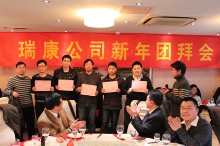 2013年1月底,公司2012年團拜聚會在南京萬家歡酒店隆重舉行,全國各地的瑞康同仁齊聚一堂,總結(jié)了12年的工作成就,共同展望公司的美好未來。期間,表彰和嘉獎了公司表現(xiàn)突出的部門和員工,并頒發(fā)了2011和2012年瑞康初級工程師證書。